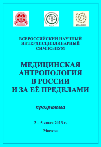Всероссийский (с международным участием) научный интердисциплинарный симпозиум «Медицинская антропология в России и за её пределами» работал с 3 по 5 июля 2013 г. в Москве (в помещении НИИ фармации Первого МГМУ им. И.М. Сеченова). Его совместно организовали и провели ИЭА РАН им. Н.Н. Миклухо-Маклая и Первый МГМУ им. И.М. Сеченова. Симпозиум был инициирован группой медицинской антропологии Института этнологии и антропологии РАН (рук. д.и.н. В.И. Харитонова), которую поддержала лаборатория биологически активных соединений НИИ фармации Первого МГМУ им. И.М. Сеченова (зав. лаб. к.фарм.н. Л.А. Павлова). Курировал организацию и проведение мероприятия проректор по научной и инновационной деятельности Первого МГМУ им. И.М. Сеченова д.и.н., проф. В.Н. Николенко. Для самих инициаторов это было уже третье совместное интердисциплинарное мероприятие за предшествовавшие два года.