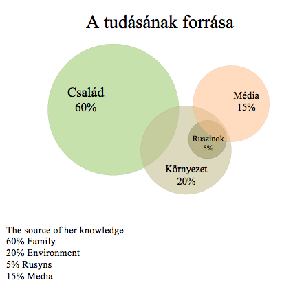 When we study where the healer’s knowledge comes from, we will see that most of it comes from her family – grandmother, mother, her closest relatives – through unconscious learning (60%). Another part of her knowledge comes from her environment, from neighbours, colleagues, former schoolmates, as she put it, word-of-mouth knowledge (20%). The information coming from these two resources cannot be clearly separated as there are overlapping or uncertain elements as well – I cannot even tell where I have heard about it – she said. The next layer is the practices and knowledge learned from the Rusyns in the neighbourhood (5%). Although this is not a significant ratio, yet it exists and despite its roots are in another culture, they fit into her practice smoothly.