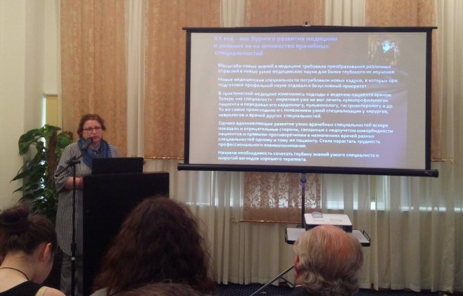 Снимок экрана 2018-10-15 в 14.09.58С интересными докладами выступили также, согласно программе: научный сотрудник ФГБНУ Национальный НИИ общественного здоровья имени Н.А. Семашко Н.С. Киргизова «Категория субздоровья в традиционной китайской медицине»; руководитель Центра научно-информационных исследований по науке, образованию и технологиям ИНИОН РАН доктор философских наук Е.Г. Гребенщикова «Внеинституциональные формы производства знания в биологии и медицине: новые зоны ответственности»; доцент кафедры Снимок экрана 2018-10-15 в 14.09.22внутренних болезней МГМСУ, кандидат медицинских наук М.В. Головизнин «Иммунология в мире идей и в мире вещей»; доцент кафедры внутренних болезней МГМСУ кандидат медицинских наук Ю.Р. Булдакова «Врач: среди совсем чужих миров и слишком ненадежных истин»; доцент кафедры внутренних болезней МГМСУ О.С. Акимова «Терапия. Место во времени».